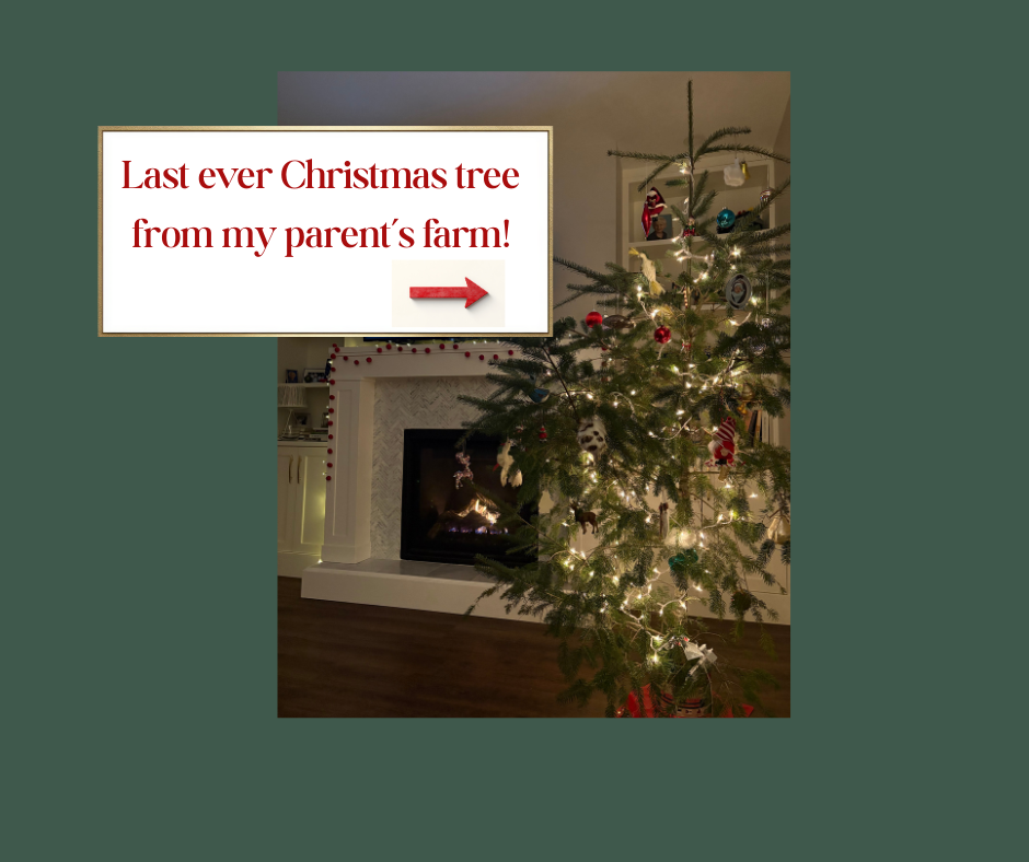 In 2026 our family will be experiencing a big change, as my parent’s have sold the small hobby farm they have lived on these last 30 years, and will be moving into a smaller home, closer to us and other family members. If you have been a long time reader, you will know that years ago my Dad would sell the Christmas trees he had planted, but as time passed he was unable to keep up with all that managing a Christmas tree farm required. The last several years the trees have been pretty much ‘Charlie Brown’ in nature, growing wild, but we still loved them. The tree you see here will be our LAST ever tree from my parent’s farm. We had to cut it out from under some blackberry vines, and it’s scraggly with a few bald spots, but we think it looks beautiful, and of course nothing beats that fresh tree scent!