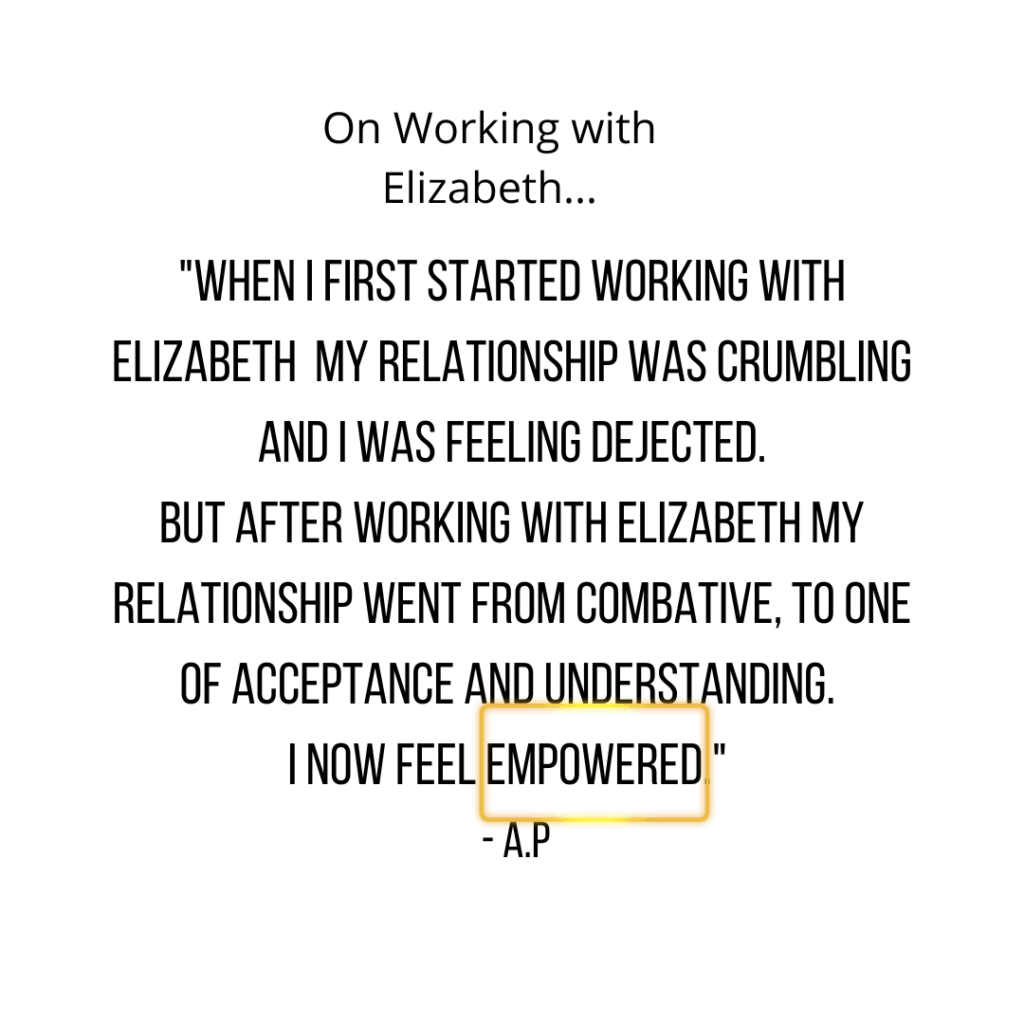 Elizabeth is a Clinical Counsellor with a Masters in Counselling Psychology and is a Certified Life Coach. Throughout her twenty plus years in the helping profession she has worked with numerous couples and individuals from all corners of the globe, to become self-empowered, navigate challenges and improve their relationships for more peace and joy. She has previously facilitated workshops and groups both on-line and in- person in Canada and the U.S, and, as a proponent of life long learning, has completed additional training in relationship counselling (Gottman), guidance studies, and mindset work.